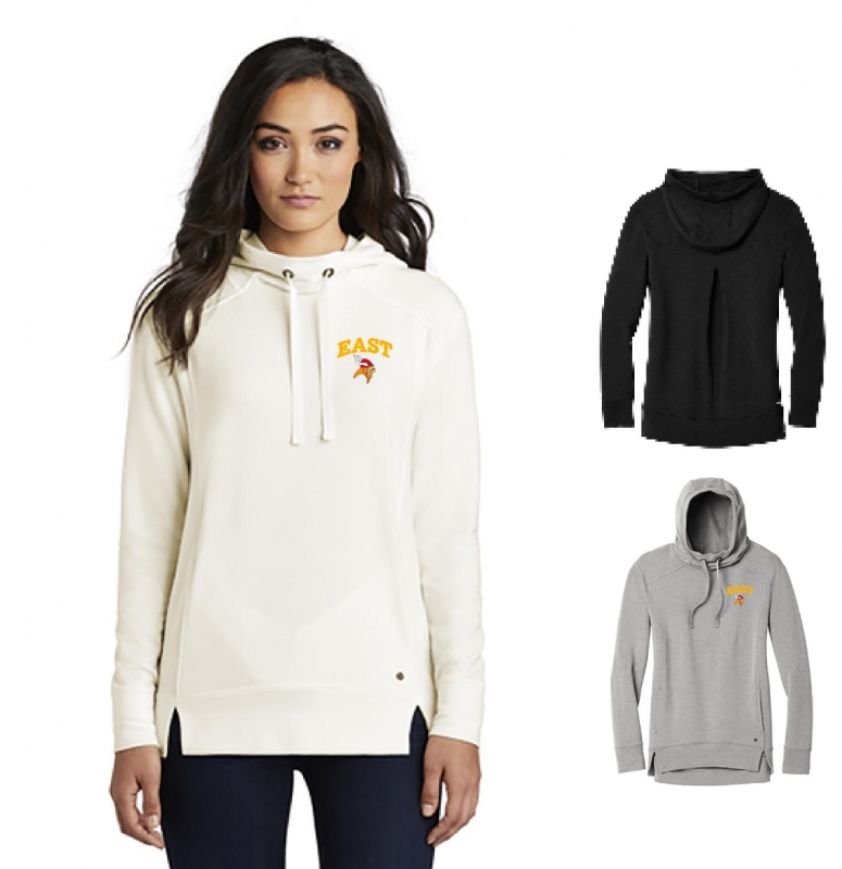 7oz 57/35/5 modal/polyester/spandex fleece; cowl neck; princess seams; open hem; side vents. This is incredibly soft and comfortable. Has longer length.